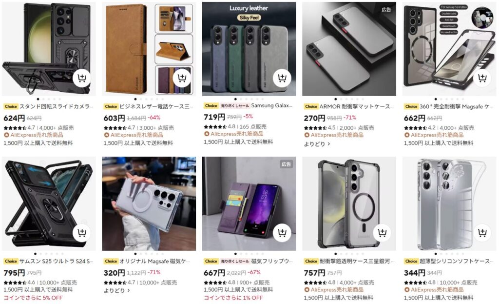 種類が豊富で安く、古い機種のケースも探しやすい。ただし、品質や納期は国内通販のようにはいきません。その分「選ぶ楽しさ」と「価格の安さ」が魅力です。